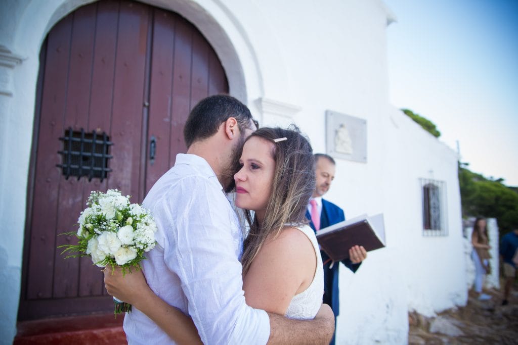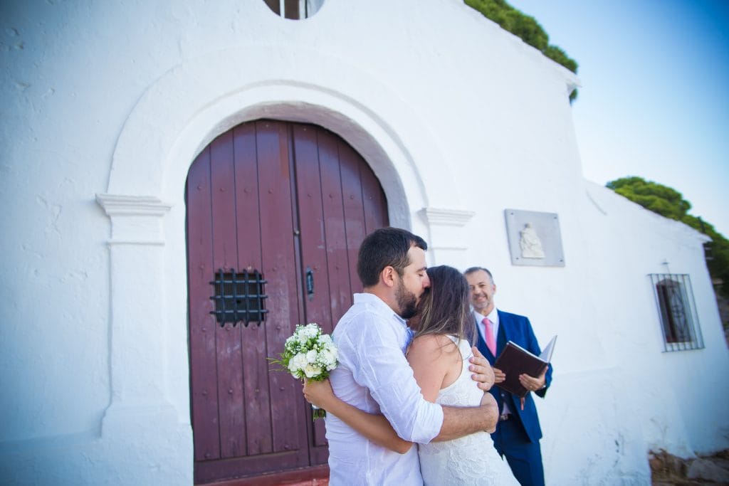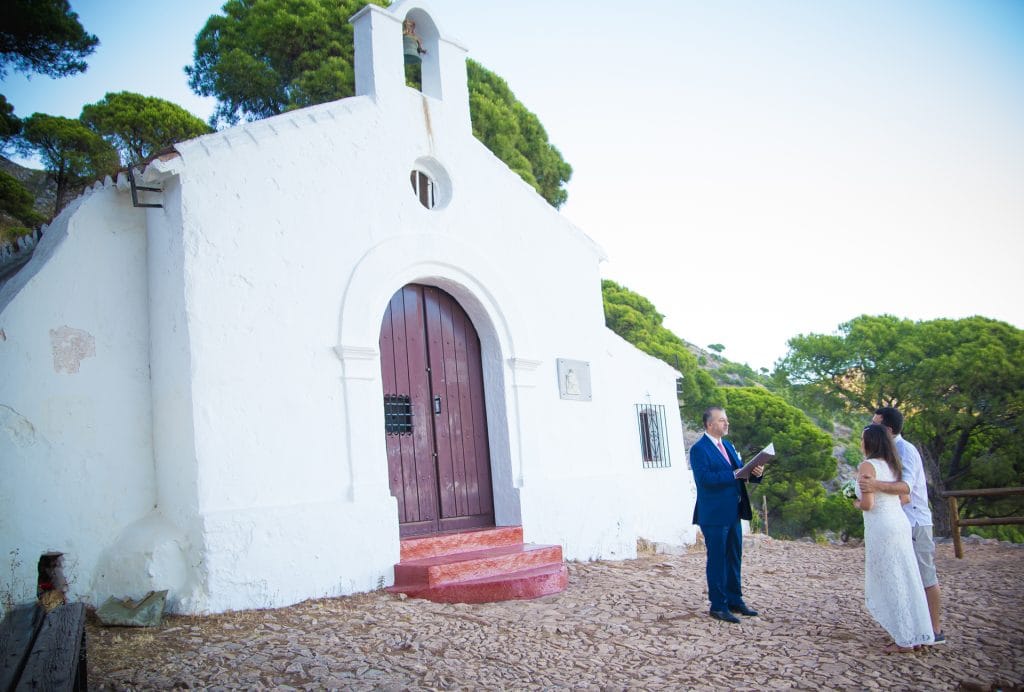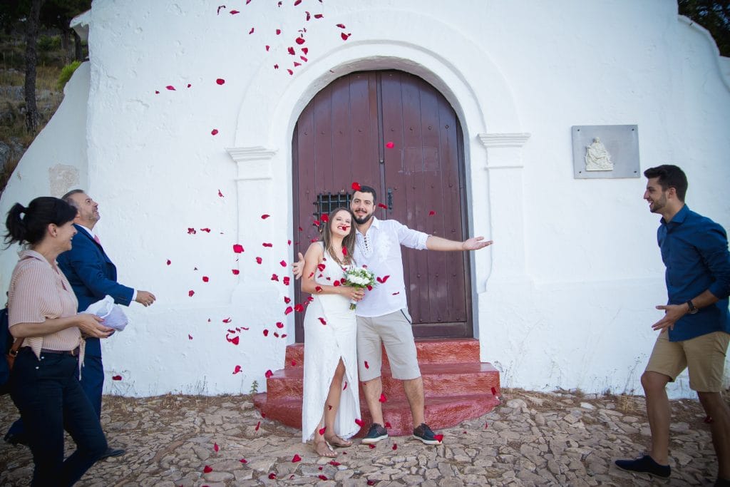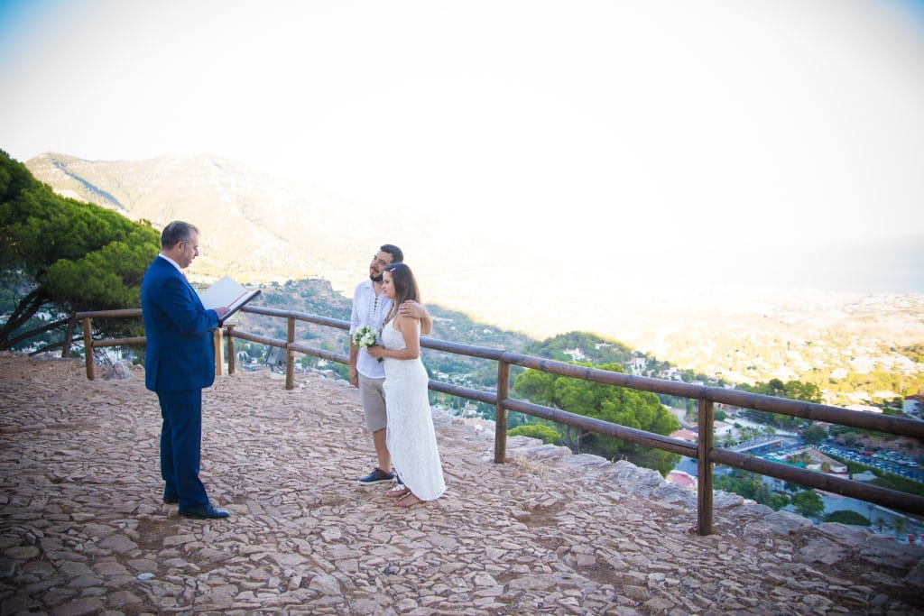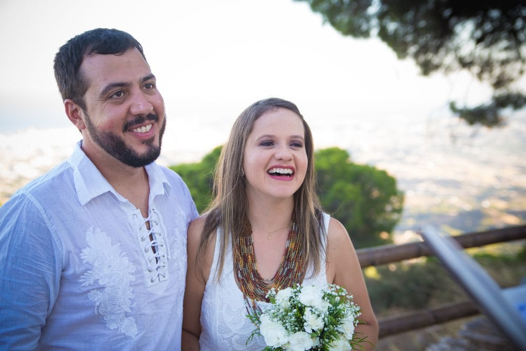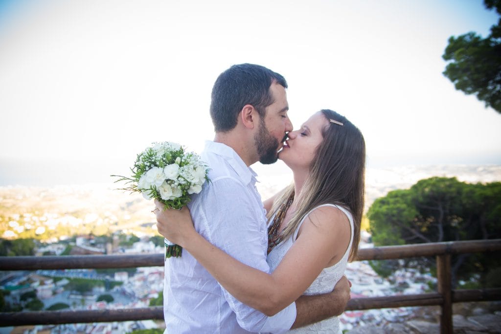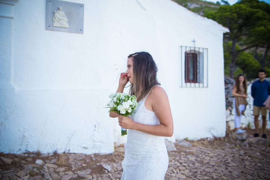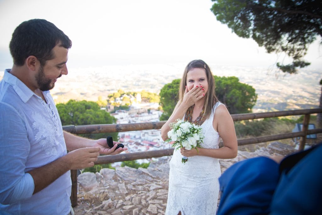 Y ahora os contamos aquí la boda sorpresa que realizamos en Mijas Pueblo, Málaga, donde en la parte alta de Mijas Pueblo, en medio de la montaña, hay una pequeña ermita a la que se llega por un camino andando. El novio le había dicho a la novia que la esperaba arriba, que había un restaurante con una bonitas vistas, que viniera vestida de blanco para cenar.