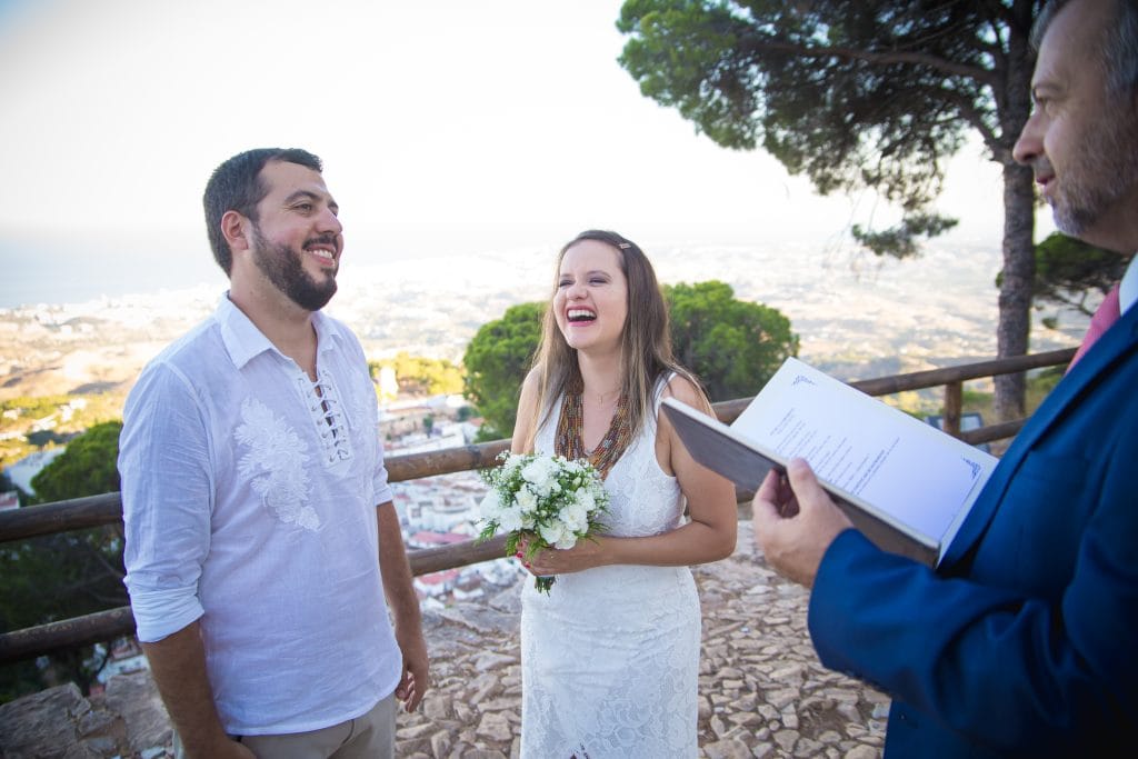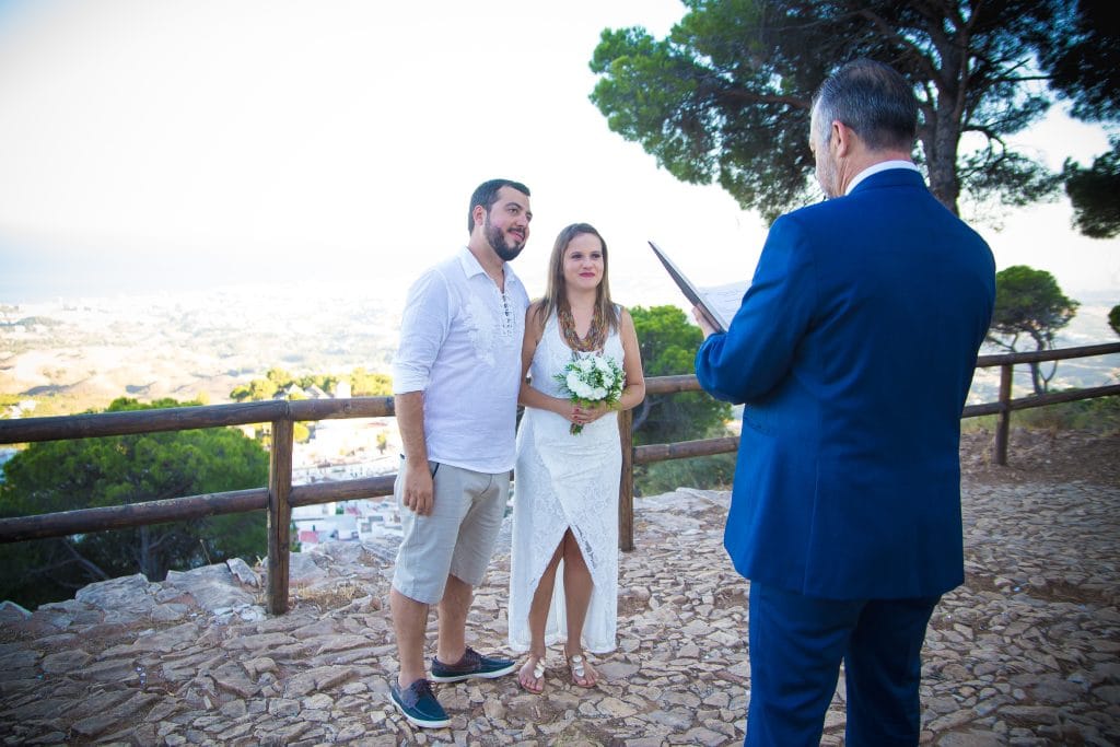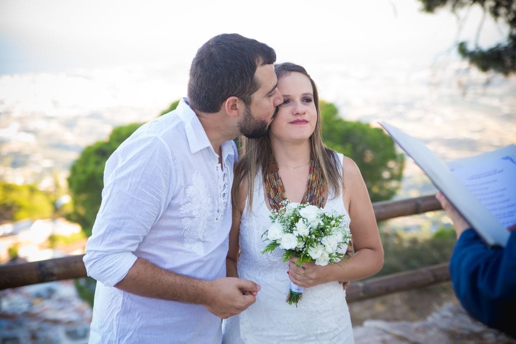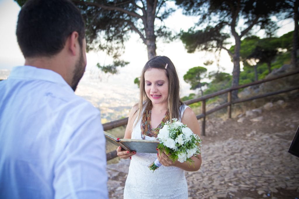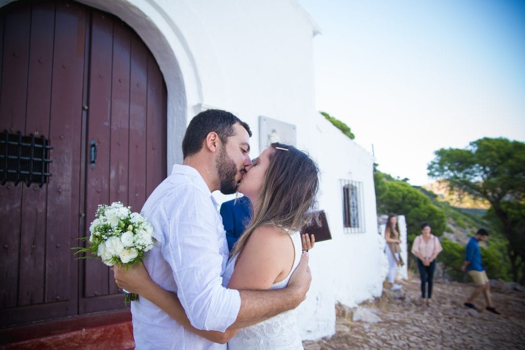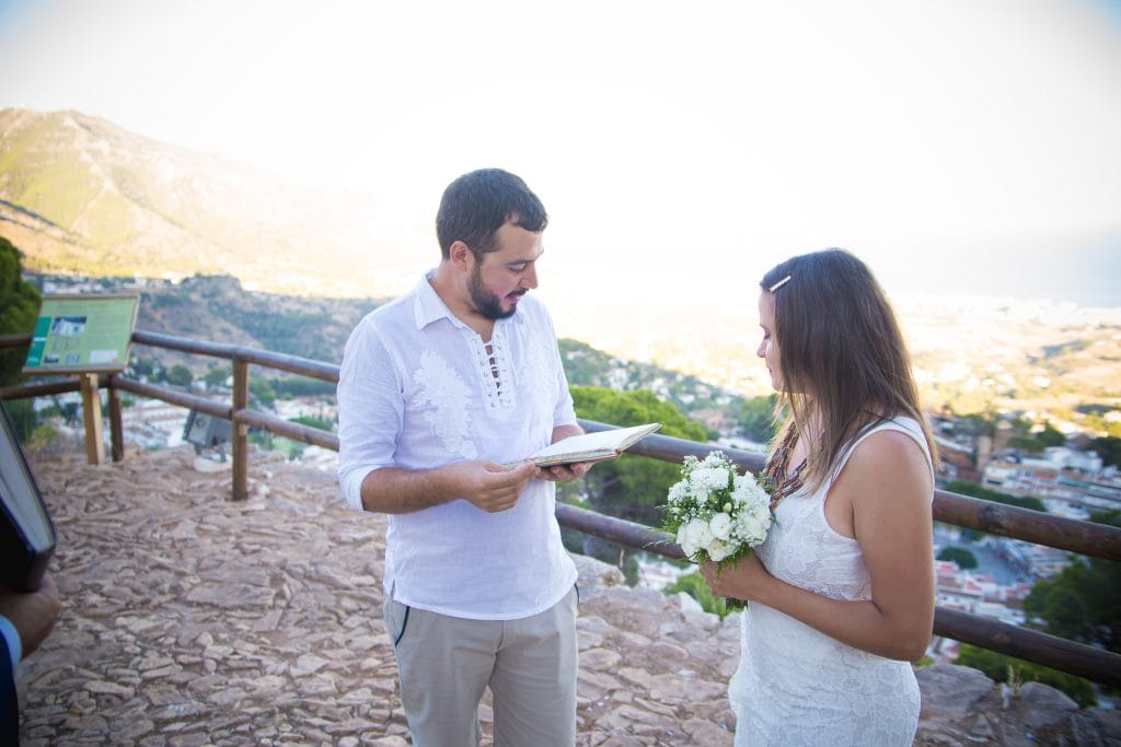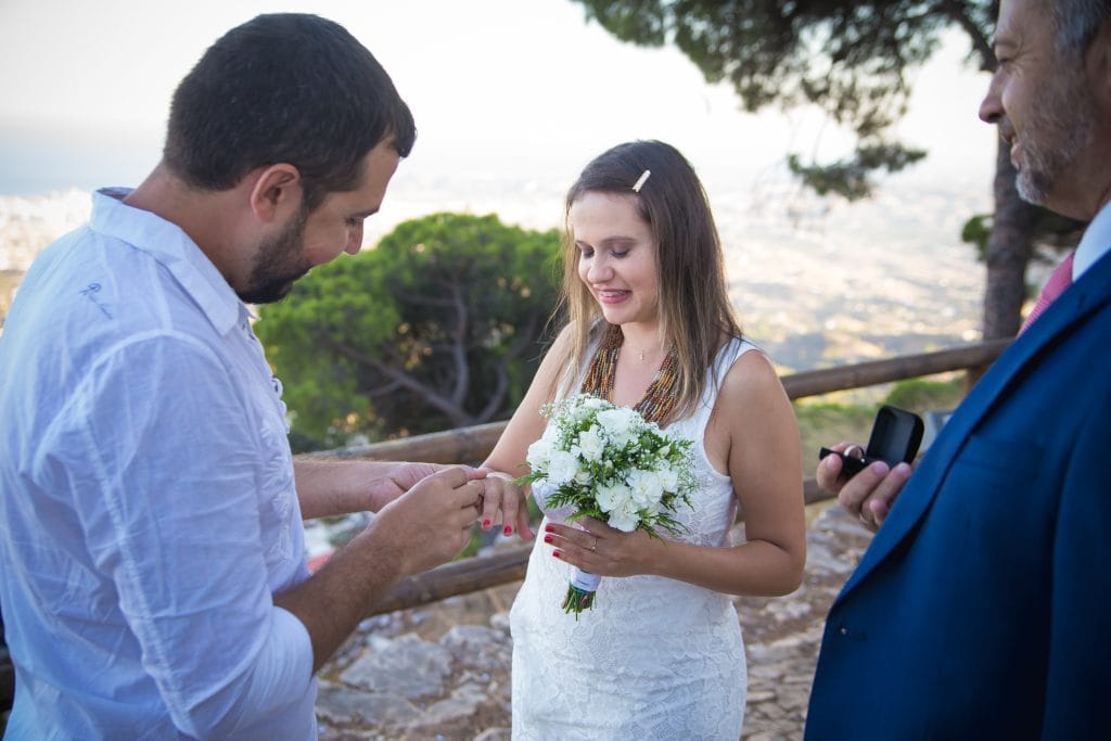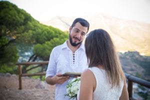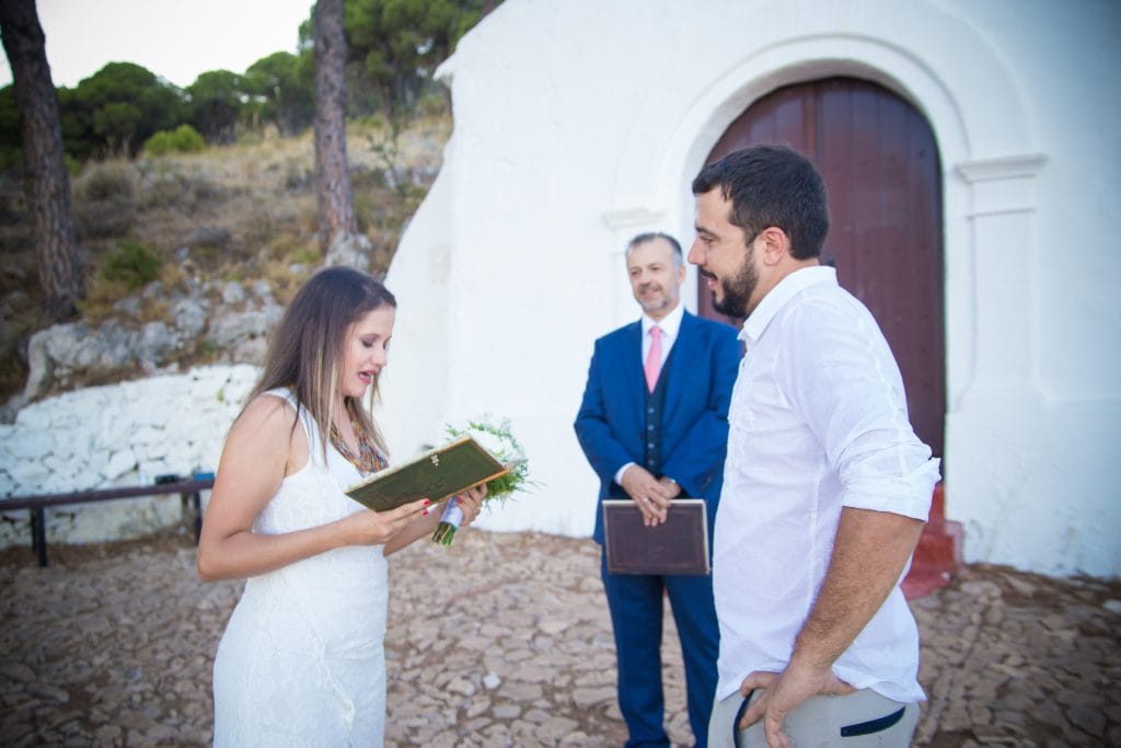 Y ahora os contamos aquí la boda sorpresa que realizamos en Mijas Pueblo, Málaga, donde en la parte alta de Mijas Pueblo, en medio de la montaña, hay una pequeña ermita a la que se llega por un camino andando. El novio le había dicho a la novia que la esperaba arriba, que había un restaurante con una bonitas vistas, que viniera vestida de blanco para cenar.