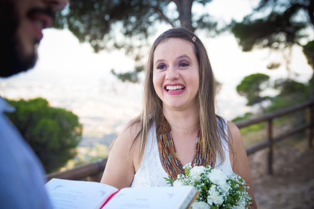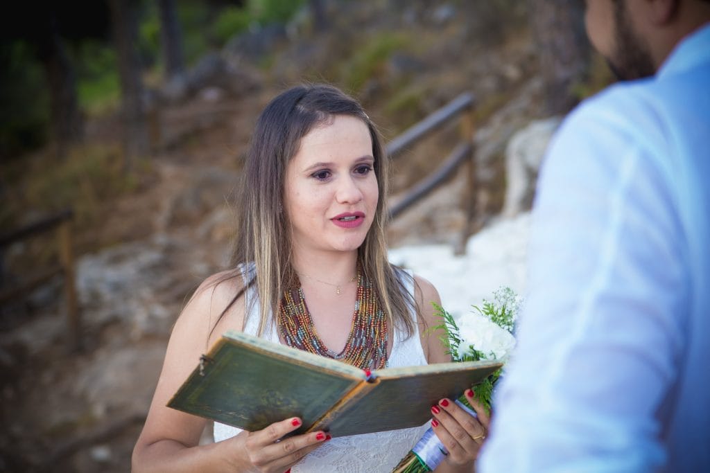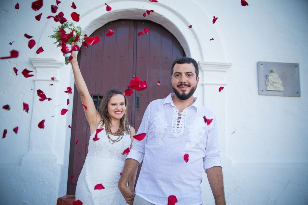 Luego hicimos la ceremonia, en portugués, era una pareja de brasileños, muy simpáticos, leyeron los votos matrimoniales, intercambiaron los anillos y les lanzamos pétalos para el final de la ceremonia.