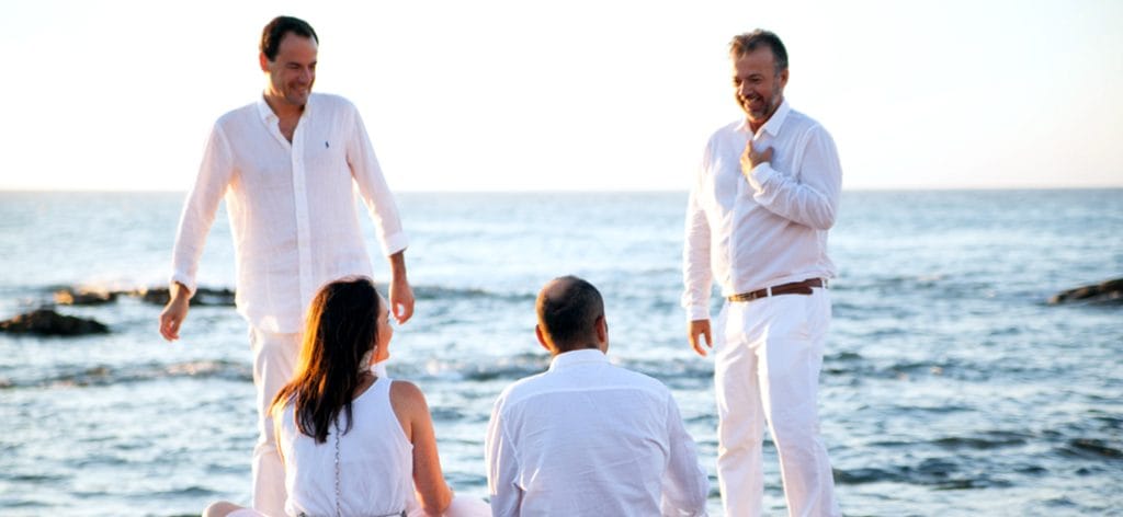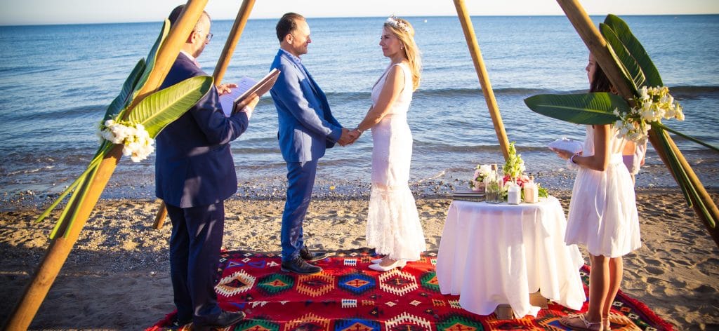 Nous réalisons des cérémonies de mariage symboliques, laïques, personnalisées, à la mesure des mariés : ce sont des cérémonies qui, aux yeux des invités, semblent totalement légales, mais elles sont symboliques : les mariés nous choisissent pour la flexibilité des horaires et des lieux où elles peuvent se dérouler (fermes, mas, plages, hôtels…), également parce qu’elles sont dynamiques, avec la participation des invités, des lectures, des rituels, des vœux de mariage et nous proposons également les cérémonies en plusieurs langues comme le français, l’anglais, l’allemand, le suédois, l’italien, le portugais et l’espagnol, et ce dans toute l’Andalousie.