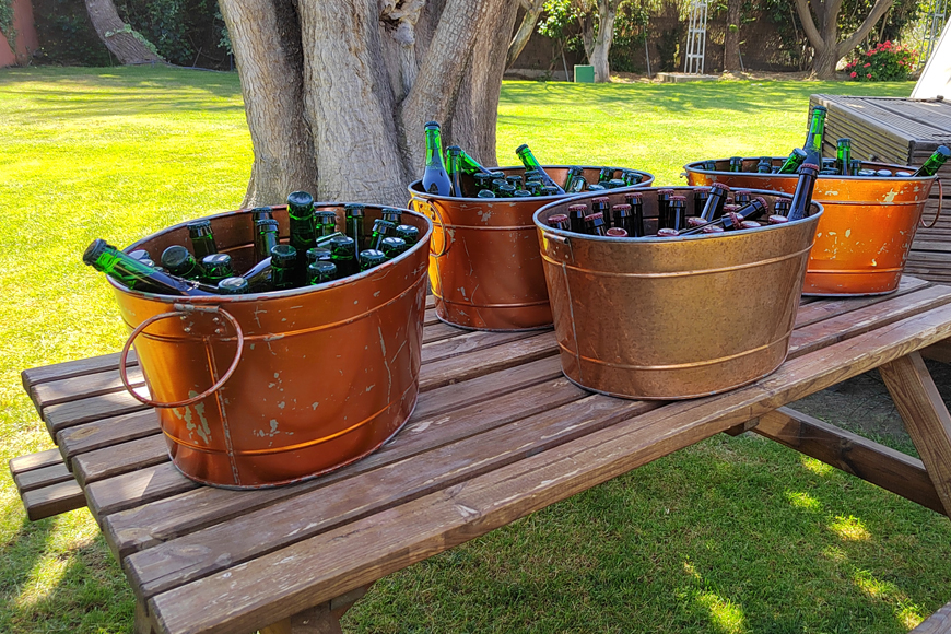 Si el tiempo no acompaña, la finca cuenta con una gran sala acristalada con vistas al jardín, con capacidad para más de 500 personas y equipada con tecnología de última generación: aire acondicionado, iluminación regulable, sonido profesional, proyector y conexión a Internet.